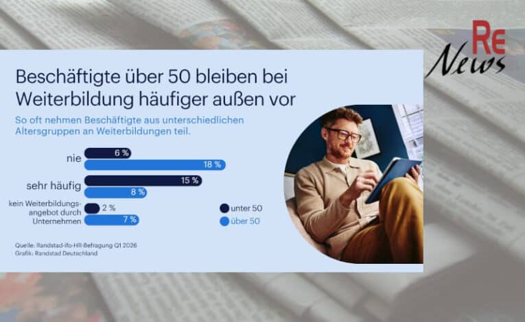 Weiterbildung für Beschäftige Ü50 wird deutlich seltener wahrgenommen als bei den unter 50 Jährigen. Das ist ein Ergebnis der Randstad-ifo-HR-Befragung Q1 2026.