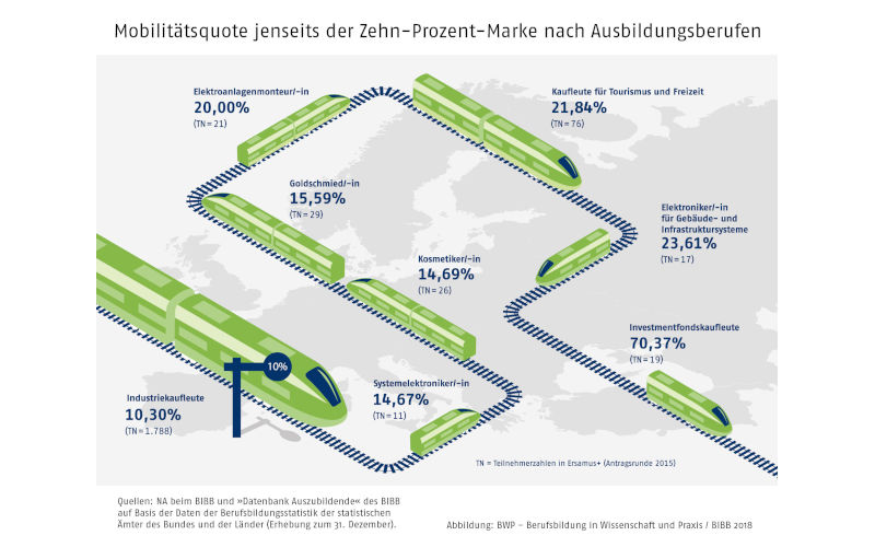 Hierzu skizziert die BWP-Ausgabe Praxisbeispiele, die dies exemplarisch verdeutlichen. Weitere Informationen in der BIBB-Fachzeitschrift "Berufsbildung in Wissenschaft und Praxis – BWP", Heft 4/2018, zum Thema "Internationale Mobilität" unter www.bibb.de/bwp-9037 (Editorial), unter www.bibb.de/bwp-9040 (Beitrag "Berufsbildung in Zahlen"), beides kostenlos zum Download, sowie unter www.bibb.de/bwp-4-2018 (Gesamtausgabe).