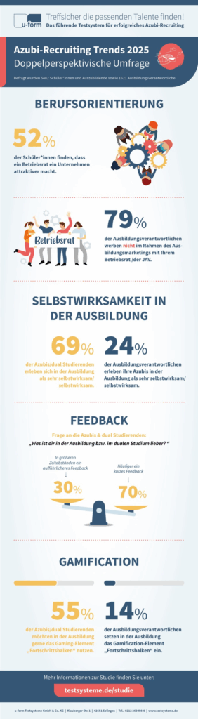 Die Ergebnisse des zweiten und ersten Teils der Studie stehen ab sofort zum kostenlosen Download zur Verfügung unter: www.testsysteme.de/studie. Der erste Teil der Azubi-Recruiting Trends 2025 ist im Mai erschienen. Die Studie wird wissenschaftlich begleitet von Prof. Dr. Christoph Beck. Studienpartner ist AUBI-plus.