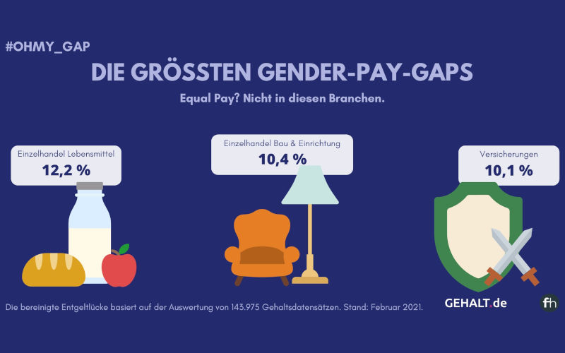 Bildrechte: Gehalt.de | Fotograf: GEHALT.de GmbHBei gleichem Beruf, gleicher Position sowie gleicher Arbeit und trotz identischer Berufserfahrung und Ausbildung verdienen Frauen rund 5 Prozent weniger als ihre männlichen Kollegen. Auch in systemrelevanten Branchen wie dem Lebensmitteleinzelhandel (12 Prozent) ist der Gender-Pay-Gap besonders groß. In der Pflege beträgt die Lücke 4 Prozent. Zum Equal Pay Day 2021 haben GEHALT.de und die comdirect-Initiative finanz-heldinnen eine Studie zur Lohnlücke in Deutschland veröffentlicht. Auf Basis von 143.975 Datensätzen wurden die bereinigten Gender-Pay-Gaps nach Branchen, Berufsgruppen und Regionen untersucht.