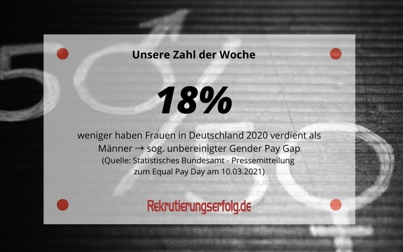 18 Prozent! In 2020 haben Frauen in Deutschland 18 % weniger verdient als Männer. Das ist das Ergebnis einer Auswertung des Statistischen Bundesamtes, das zum Equal Pay Day 2021 publiziert wurde. Dieser sogenannte unbereinigte Gender Pay Gap hat sich damit zum Vorjahr um einen Prozentpunkt verringert.