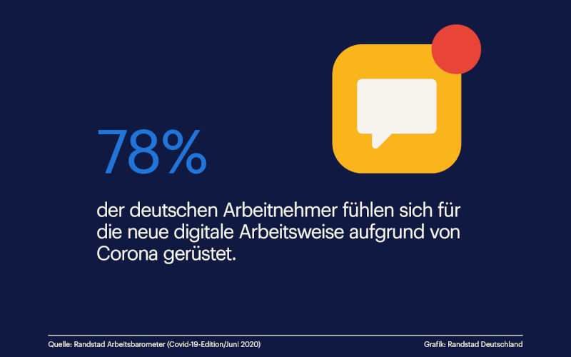 Quelle: obs/Randstad Deutschland GmbH & Co. KGDie Mehrheit der deutschen Arbeitnehmer (78%) fühlt sich für die digitale Arbeitsweise gerüstet, die die neue Normalität mit Corona erfordert. Das geht aus dem aktuellen Randstad Arbeitsbarometer hervor (Covid-19-Edition/Juni 2020). "Vor den diesjährigen Ereignissen fiel das Urteil zur Frage, ob Deutschland den digitalen Wandel schafft, oft negativ aus", sagt Dr. Christoph Kahlenberg, Leiter der Randstad Akademie. "Doch die Krise zeigt uns, dass die Digitalisierung machbar ist und viele Chancen bietet."